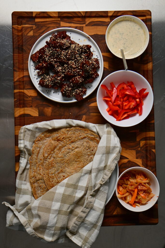 - Serve – Fill with spreads, vegetables, tofu, wipe hummus with it, or fill with a sweet filling for a French-style crepe.
