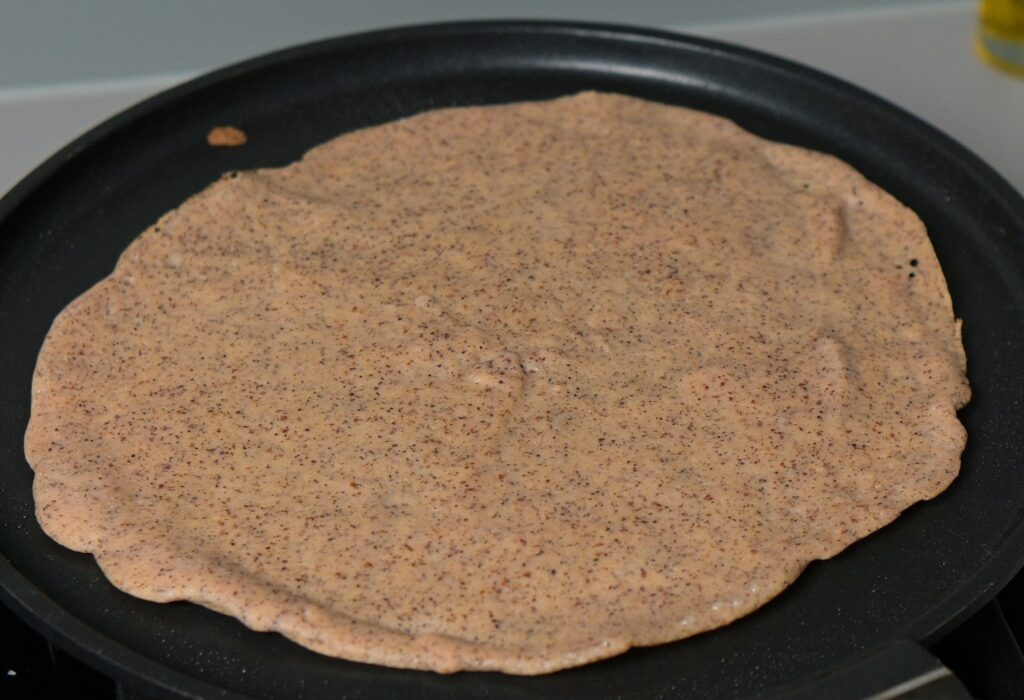 - Cook the tortillas – Pour 1/2 cup of batter, tilt the pan to spread evenly. Cook 4–5 minutes until edges lift, then flip gently.
